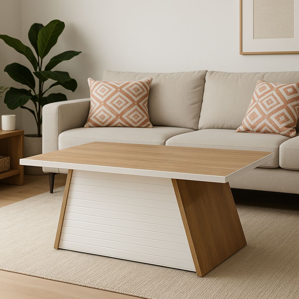 Fabricada con melamina de alta calidad, la Mesa Centro Fiorella es sumamente resistente a manchas y ralladuras, lo que asegura un mantenimiento sencillo y una apariencia impecable por mucho tiempo. Sus cantos en PVC de 2mm brindan una protección efectiva contra posibles golpes, prolongando su vida útil.