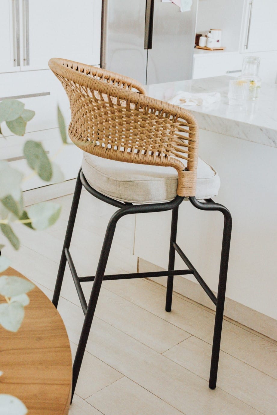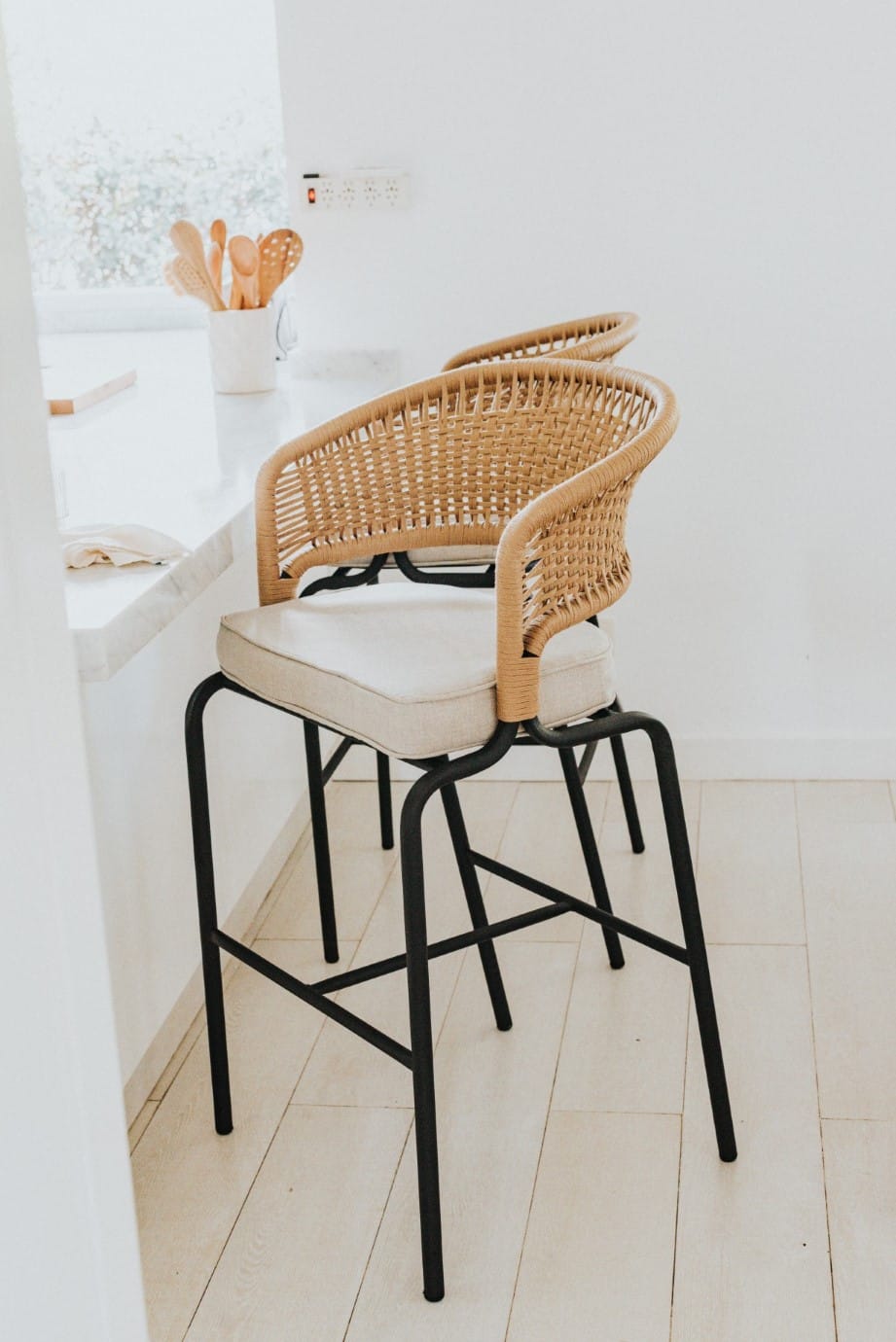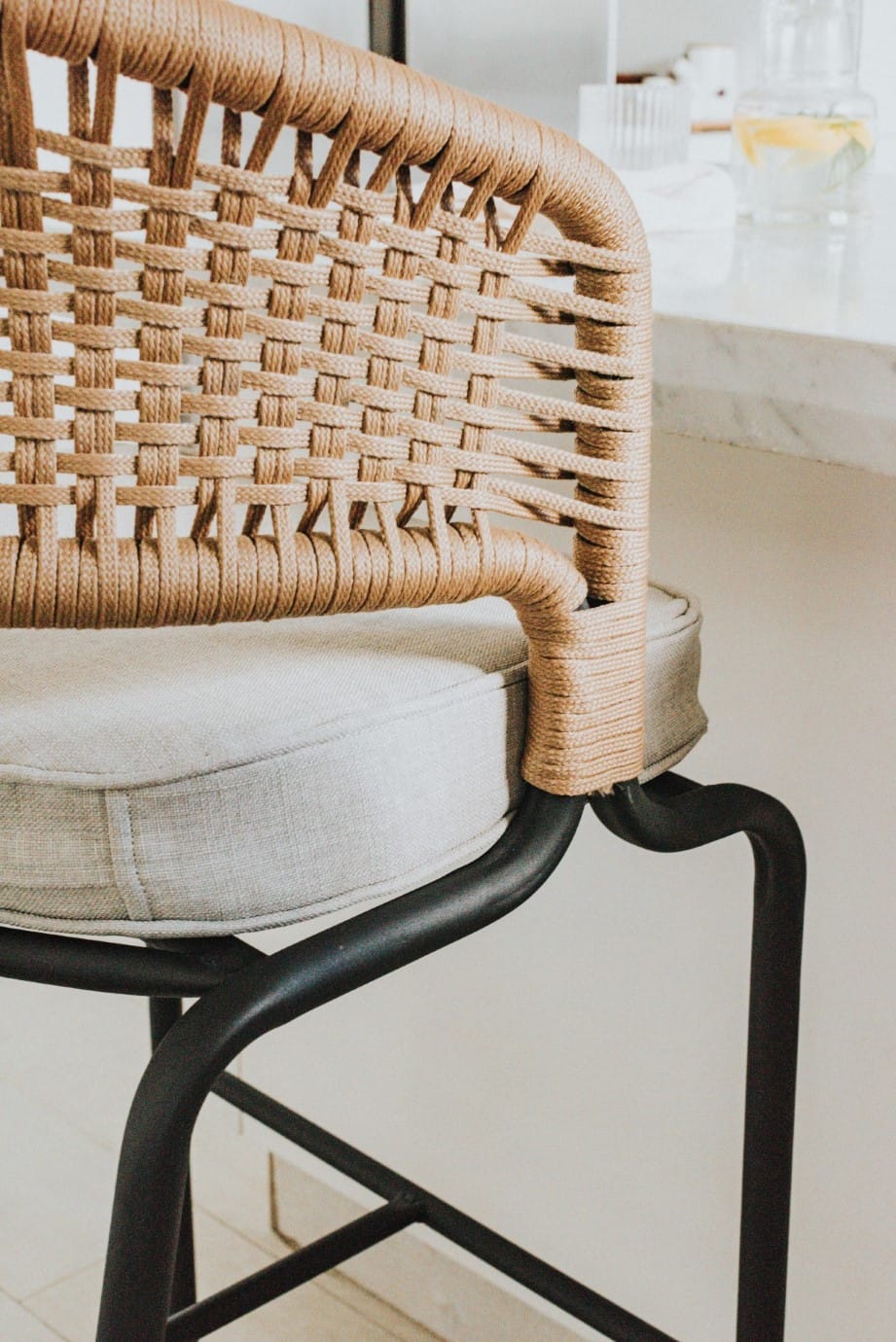 Fabricada en caño estructural de 1″ con pintura epoxi horneada, la Banqueta Formentera garantiza solidez y un acabado impecable. Su respaldo está tejido en cordón plano de polipropileno símil yute, aportando textura y un estilo cálido y contemporáneo.
