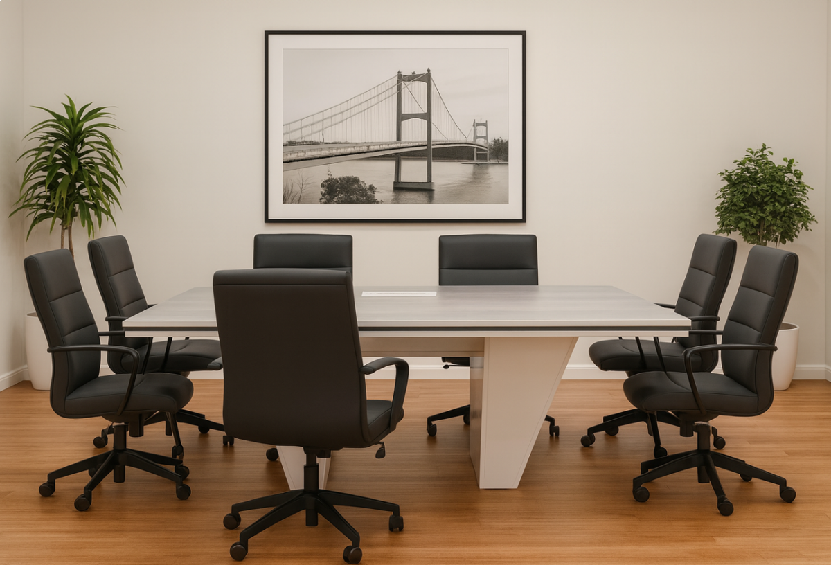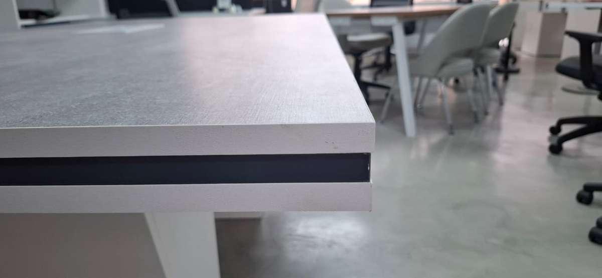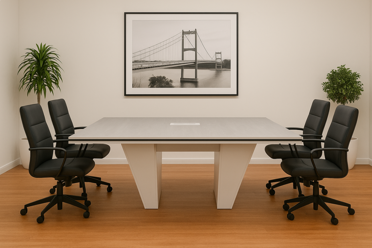 Un detalle clave que distingue a nuestra Mesa de Reunión es su pasacables central. Esta característica facilita enormemente la conectividad de dispositivos electrónicos, permitiendo que laptops, proyectores y otros equipos se conecten de manera organizada y discreta. Esto se traduce en un ambiente de trabajo más prolijo y funcional, haciendo que tus presentaciones y reuniones sean mucho más cómodas y eficientes