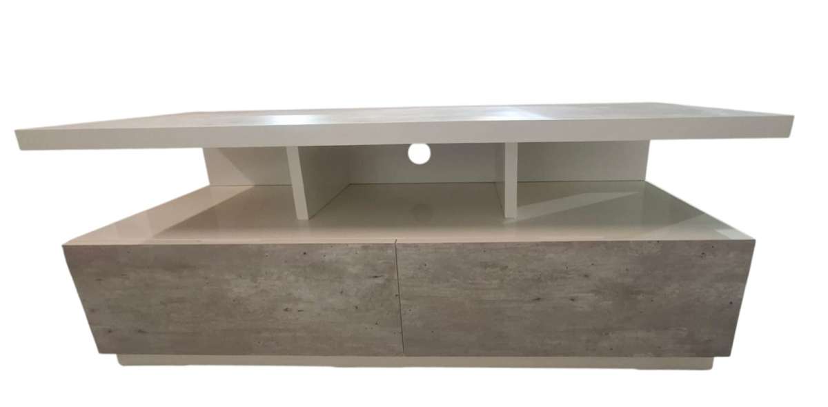 Fabricado en melamina de alta calidad, el Rack Jorge 130 es excepcionalmente resistente a manchas y ralladuras, lo que asegura un mantenimiento sencillo y una apariencia impecable por mucho tiempo. Sus cantos en PVC de 1mm brindan una protección robusta contra posibles golpes, prolongando la vida útil del mueble.