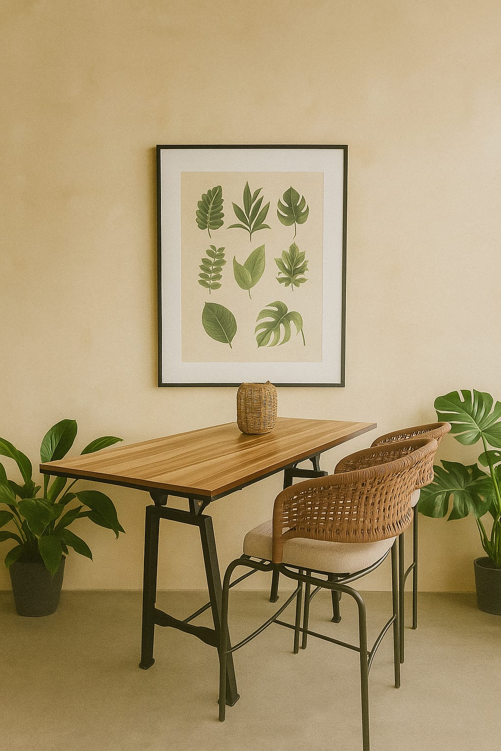 Fabricado en melamina de alta calidad, el Desayunador Dosbarth es sinónimo de durabilidad y fácil mantenimiento; su superficie es resistente a manchas y ralladuras, lo que asegura que se mantenga impecable con el uso diario. Sus cantos con doble faja en PVC de 1mm protegen eficazmente el mueble de posibles golpes, prolongando su vida útil. El toque distintivo lo aportan sus patas en hierro negro mate, que no solo garantizan una estabilidad excepcional, sino que le confieren ese estilo industrial tan en tendencia, ideal para ambientes con carácter.