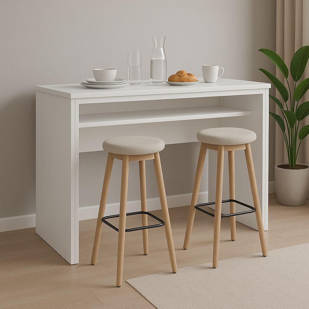 El Desayunador Caín es la pieza ideal para optimizar tu cocina, comedor diario o incluso un ambiente integrado. Su diseño moderno se fusiona con materiales de primera calidad para ofrecerte un mueble versátil, perfecto para desayunos rápidos, comidas