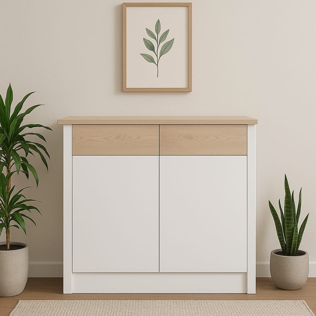 con dos cajones perfectos para organizar llaves, correspondencia o pequeños objetos. Pero la gran